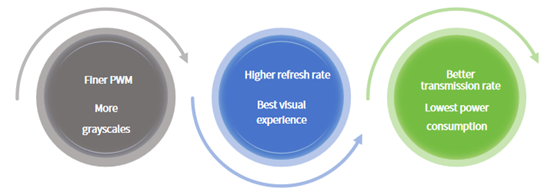 From a power-consumption perspective, while pixel density scales quadratically with pitch reduction, improvements in single-LED luminous efficacy and lower operating current have slowed—or even reduced—the total power share of LED chips. In contrast, the power consumption of traditional 16-channel driver IC architectures rises sharply, emerging as a new energy-efficiency bottleneck.