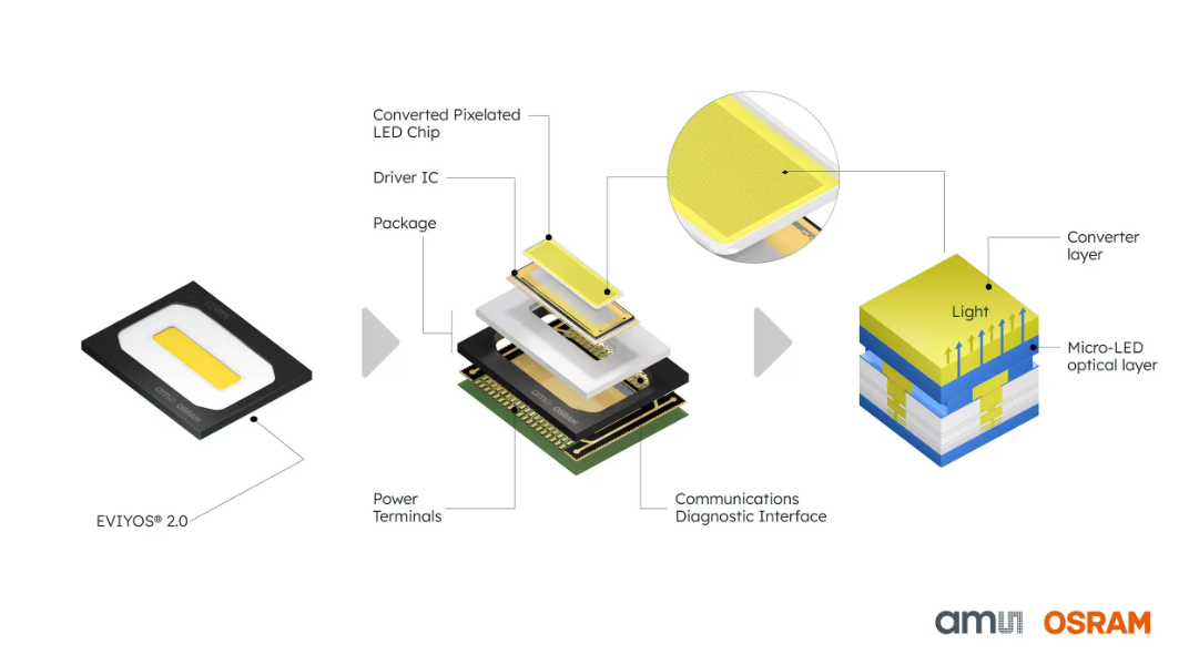 Fig. 1: In the EVIYOS product, ams OSRAM integrates the microLED array and driver circuitry into a single compact package