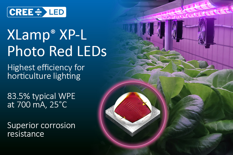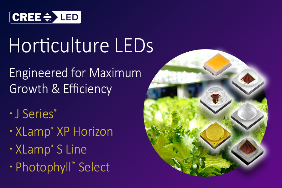 To meet increasing demands for extreme cost-effectiveness, Cree LED continues a strategy of running high power and mid-power lines in parallel. Morgan explained that J Series® mid-power LEDs deliver strong cost-performance and energy efficiency, making them well suited for cost-sensitive applications such as consumer horticulture, supplemental lighting, and high-density vertical farming.